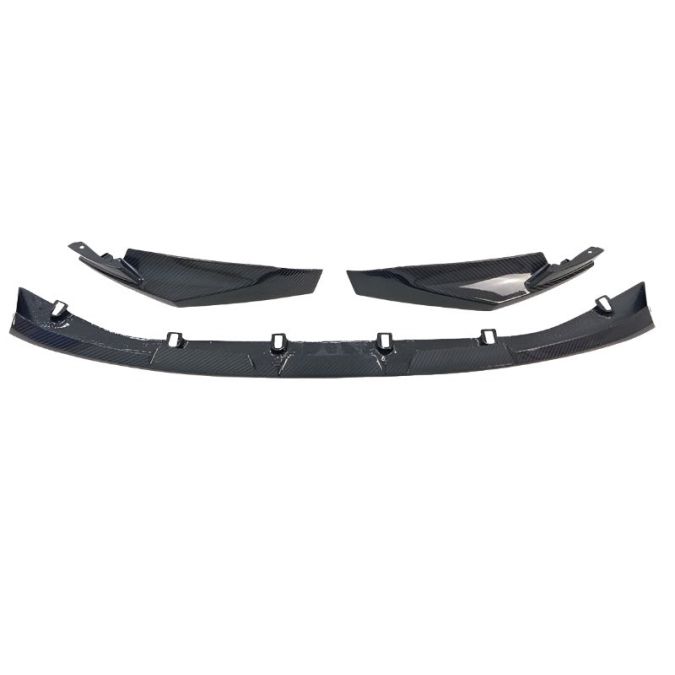 The M Performance style front splitter is made with high quality dry carbon with three separate pieces: Front lip, left and right side splitters. When installed, all three pieces connect to give your vehicle a sporty look with a lower looking stance.