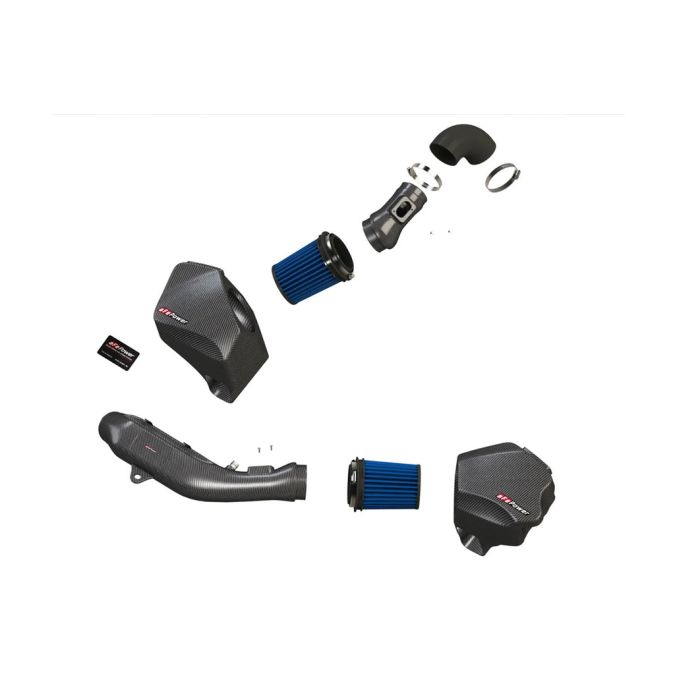 The aFe Power Black Series Momentum carbon fiber cold air intake system for the S55 engine in the F8X BMW M3, M4 and M2 Competition adds up to 33% flow increase and 17 HP / 19 TQ. The twin turbocharged engine demands more air and protection, so aFe Power delivers with lightweight inlet tubes and massive air filters to feed endless amounts of clean cool air. Available with the oiled blue Pro 5R or the grey non-oiled Dry S filters.