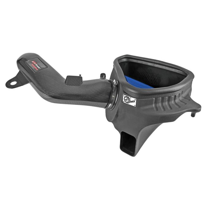 More from aFe Power: Large Five Layer Performance Air Filter: This 7” tall 360-degree radial flow air filter features a 4” round flange and our oiled Pro 5R media with five layers of progressively finer cotton gauze media for maximum airflow and performance. This media is best for street and track use. Unique One Piece Carbon Fiber Housing: The included massive air filter is surrounded by an open-element XLPE (cross-linked polyethylene) polymer housing that pulls in air from the front of the vehicle and minimizes warm engine air, for maximum performance. Its open design allows for easy viewing of the air filter and delivers an aggressive Air Intake sound. It connects to the vehicle’s factory air inlet with no additional hardware.