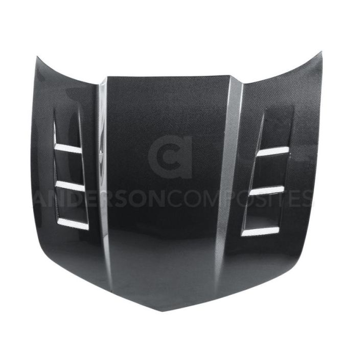 *Mesh screens are removable and paintable *Mounts with OE hardware *Carbon fiber hood (A side) bonded to fiberglass 'skeleton' (B side) *Vacuum infused process with 3K, 2x2 twill carbon fiber cloth, gloss finish *All hoods require hood pins for safety reasons. Anderson Composites will not be liable for any damages to the product and the vehicle caused by not properly using hood pins
