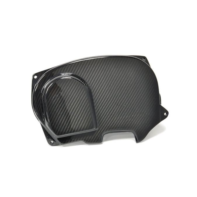 APR carbon fiber timing belt and cam gear cover fits all Evo 4/5/6/7/8/9 models and includes the expanded section to clear the Evo 9 MIVEC gear.