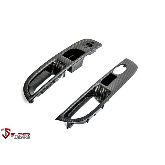 Replace the standard door grab and window switch units (left and right) located on the door cards with our upgraded full carbon fibre version. Will fit both left hand drive cars and right hand drive cars.