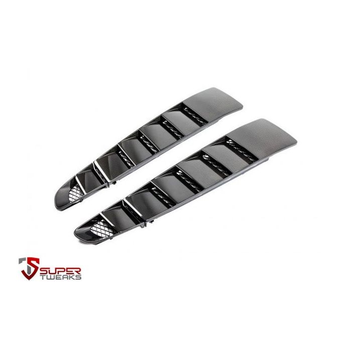 Replace the standard dull plastic exterior rear engine vents (left and right) with our upgraded full carbon fibre version. Will fit both left hand drive cars and right hand drive cars.