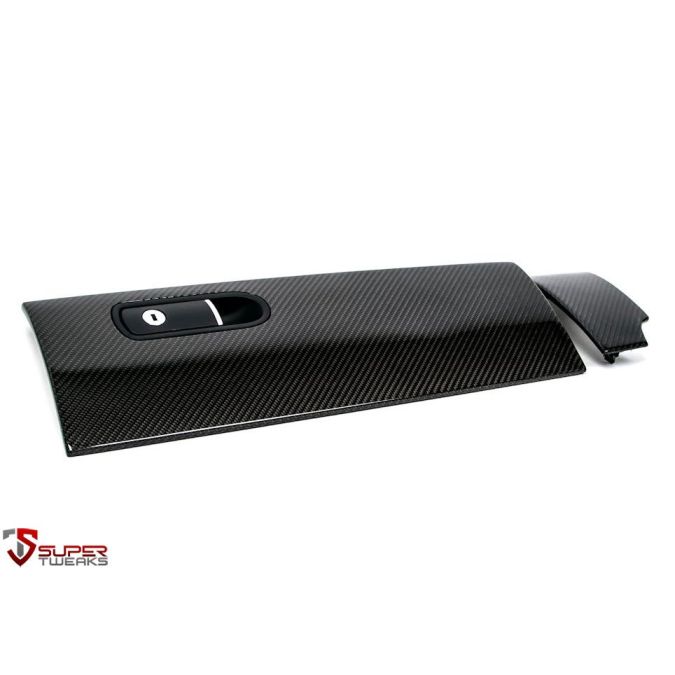 Replace the standard glove box cover (two piece, including handle) on the dashboard with our upgraded full carbon fibre version. Will fit both left hand drive cars and right hand drive cars.