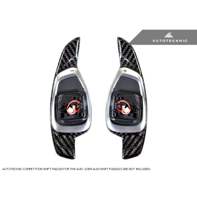 This is our new dry carbon fiber paddles made for select Audi vehicles equipped with the DSG transmission. These beautiful pre-preg dry carbon crafted paddles are made with 100% carbon fiber, then finished off with a UV-resistant gloss clear coat to ensure longevity.