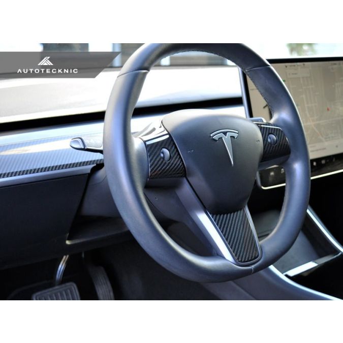 AutoTecknic Dry Carbon Fiber Steering Wheel & Dash Trim - Tesla Model 3