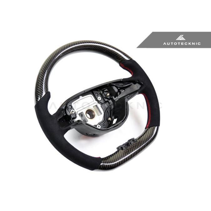 Upgrade your Mercedes-Benz Sport steering wheel with the AutoTecknic Replacement Carbon Steering Wheel. Made to exact OEM specifications with a twill weave carbon fiber finish on the top and bottom, luxurious Alcantara suede side grips, and compatibility with models manufactured after 07/2014. Professional installation recommended. Also available in Carbon Fiber/Perforated Leather Finish.