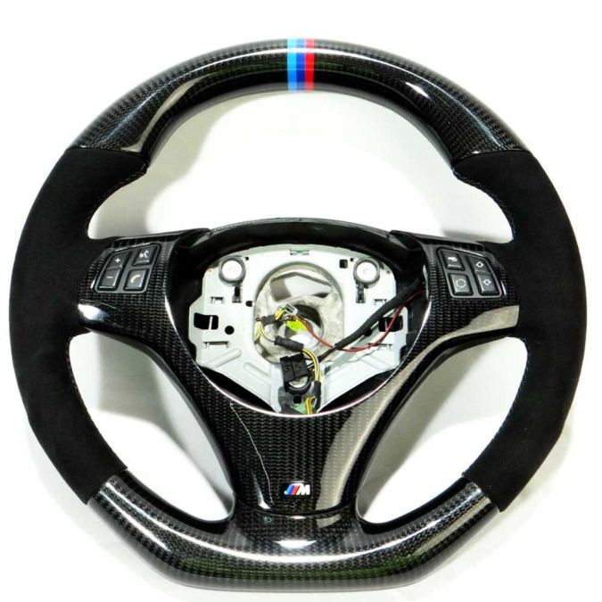 Upgrade your BMW E70/E71 with this BMW E70/E71 Steering Wheel Carbon Fiber Alcantara Stripes Flat Bottom and experience the ultimate driving pleasure. Order now and take your driving experience to the next level!
