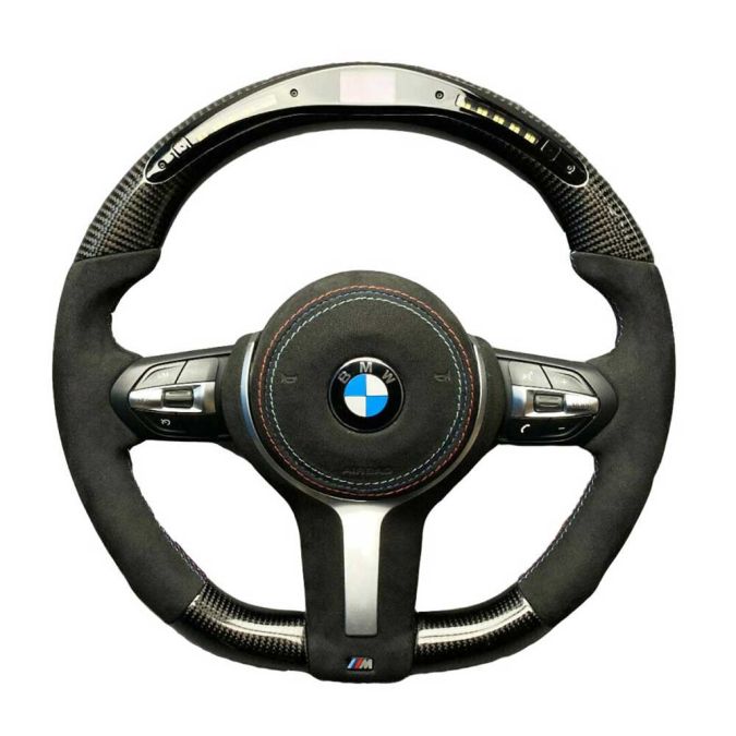 Introducing the BMW F15 F30 M-Style Steering Wheel – Carbor Fiber Alcantara LED Flat Bottom.