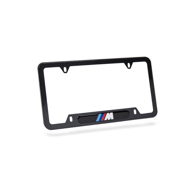 BMW M Performance license plate frame is constructed of real hand-finished and hand-cured carbon fiber. Matching mounting hardware included.