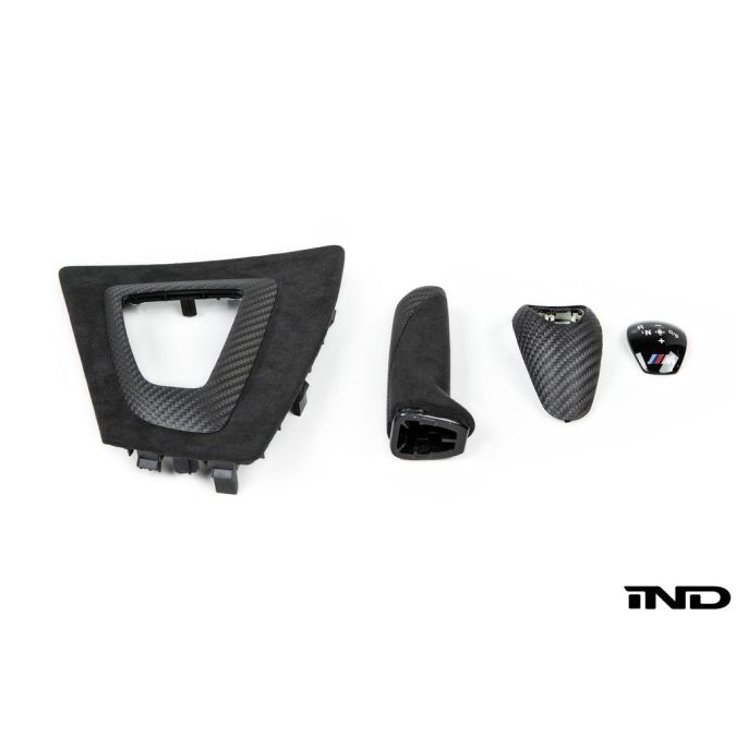 Upgrade the interior of your 2016-2018 BMW M2 with the Genuine BMW M Performance Carbon & Alcantara Interior Kit. This kit includes shift lever trim, DCT shift console trim, and ebrake handle for a sleek, sporty look. Add on the armrest package for a complete transformation, including a matching Alcantara shift boot and matte carbon knob. Available in Polar Blue or Sunset Orange stitching. Elevate your driving experience with this high-quality kit from BMW.