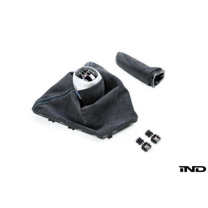 Upgrade the look and feel of your BMW F87 M2 with the BMW M Performance Shift Knob + Parking Brake Handle Package. Made by BMW, this package includes a stylish shift knob with polar blue stitching and tricolor stripes, as well as a Matte Carbon Emergency Brake Lever Handle. The Alcantara and aluminum construction provides a superior feel, and the kit comes with all the necessary hardware for installation. Enhance your driving experience with this premium upgrade.