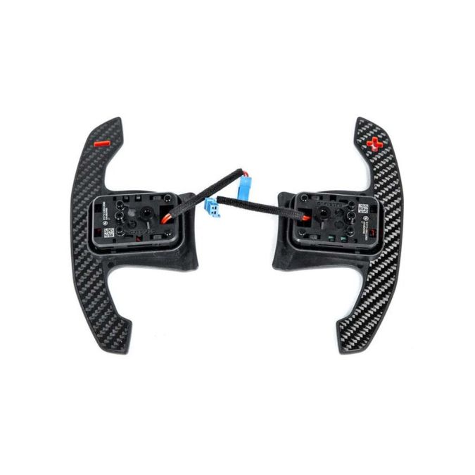 These OEM BMW carbon fiber shift paddles are a direct plug-and-play upgrade for your G80/G82 M3/M4. As an M Performance part, they boast top-notch quality with a 2x2 weave and red gear up/down indicators. If you want to add more carbon fiber to your BMW's interior, these paddles are the perfect choice.