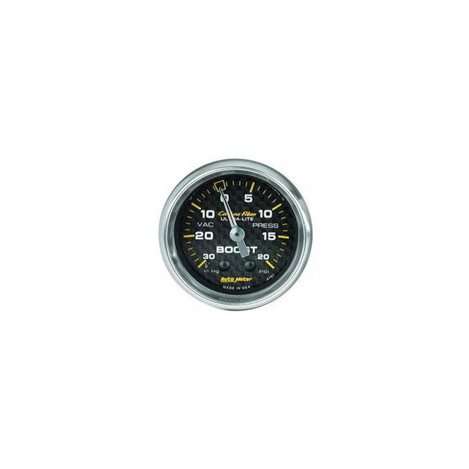 Boost/Vacuum: -30 to 20 PSI - Carbon Fiber Mechanical Gauge (2 5/8)