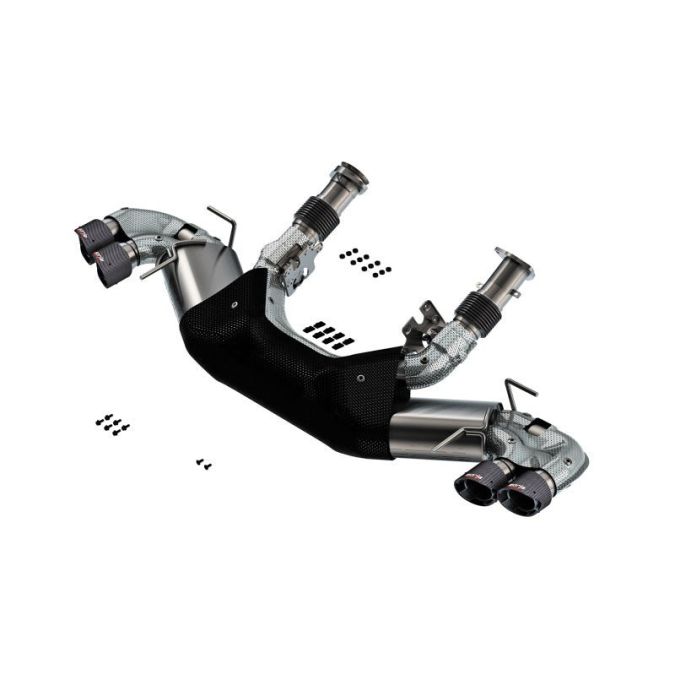 Developing systems for the C8 Corvette presented BORLA(r) engineers with unique challenges, but our team was up to the challenge. Great care was taken to ensure the integrity and function of the system as well as the vehicle itself. Part number 140840CF includes AFM valves but does NOT include NPP dual mode exhaust valves. The S-Type sound level delivers an aggressive, yet balanced sound with a deep tone. It provides a more exciting driving experience without any drone. It features our Polyphonic Harmonizer and SwitchFire(tm) technology. BORLA(r)'S Polyphonic Harmonizer Technology utilizes patented units that contain pipes of different diameters and lengths to create multiple exhaust notes that harmonize to deliver a clean, rich, full-bodied sound. Completely eliminating the turbulent center intersection of a standard X-Pipe, BORLA(r)'S patented SwitchFire(tm) design truly blends the combustion pulses from both sides of the engine for improved performance and a custom sound. Strategically placed heat shielding is included to prevent exhaust heat damage and protect your Corvette. It comes with 4 Carbon Fiber tips with bright center and is also available with Bright Chrome on T-304 stainless steel tips part number 140840, or Black Chrome on T-304 stainless steel tips, part number 140840BC. The system is constructed using T-304 stainless steel and is backed by our Million Mile Warranty. System ships in 2 boxes. Note: After installation of the BORLA(r) system, the controllers for the AFM valves in the exhaust system should be re-calibrated according to GM Document ID 5406413. BORLA(r) recommends taking your car to the nearest Chevrolet dealer for exhaust valve recalibration services., System Features:, Cat-Back(tm) Exhaust System, Includes AFM Valves., Does NOT Include NPP Valves, S-Type Sound Level, SwitchFire(tm) Technology, Heat Shielding, 4 Carbon Fiber Tips With Bright Centers, T-304 Stainless Steel Construction, Million Mile Warranty