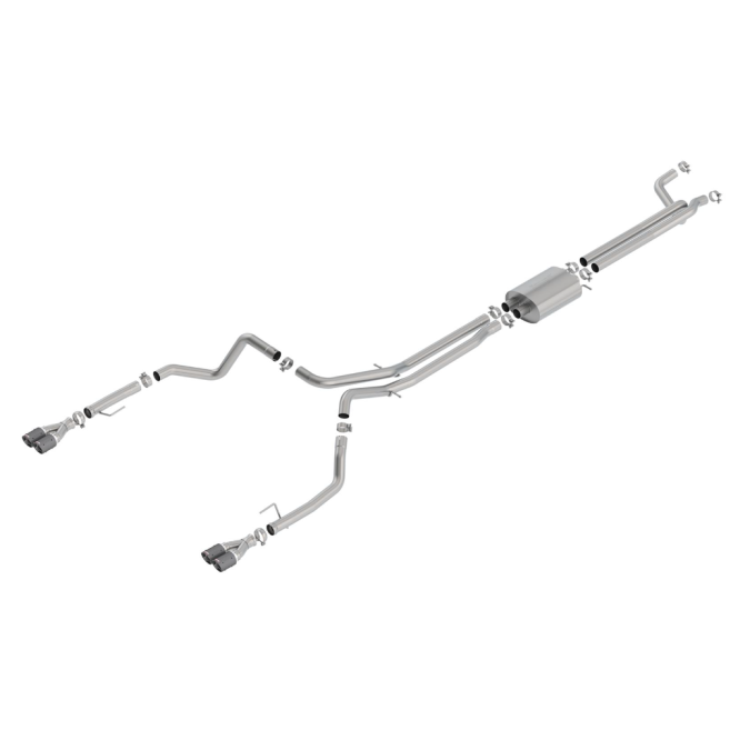2019-2023 Chevrolet Silverado 1500/ GMC Sierra 1500 Cat-Back(tm) Exhaust System S-Type: 140779CF. S-Type Cat-Back(tm) Exh. Sys. 2019-2023 Chev. Silv. 1500/ GMC Sierra 1500 (EXCEPT ZR2 & AT4X) 6.2L V8 AT 2 & 4WD Ext. Cab With Std. Bed (6' 7) 147.7 WB/ Crew Cab With Short Bed (5' 9) 147.7 WB. True Duals. Factory Split Rear Exit ONLY. Along with the distinctive Borla Sound of Power recognized by motoring enthusiasts everywhere, upgrading your ride with a Borla exhaust gives you a boost in power and torque, improved fuel economy, longer engine life and refined motorsport styling. But most of all, Borla gives you the intoxicating rush that comes with every squeeze of the throttle, the thrill of raging power with every shift, and a heart-pounding soundtrack to match. More than anything else, we understand that we build far more than exhaust systems. We build excitement., Along with the distinctive Borla Sound of Power recognized by motoring enthusiasts everywhere, upgrading your ride with a Borla exhaust gives you a boost in power and torque, improved fuel economy, longer engine life and refined motorsport styling. But most of all, Borla gives you the intoxicating rush that comes with every squeeze of the throttle, the thrill of raging power with every shift, and a heart-pounding soundtrack to match. More than anything else, we understand that we build far more than exhaust systems. We build excitement.