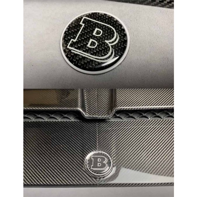 The Brabus emblem designed for the hood of the Mercedes G-Class is compatible with the New G63 G500 from 2018 onwards, as well as the previous W463 G500 G63 models in the Brabus style. The hood badge comprises two parts: a metal base painted in gray and a carbon insert featuring a gray B logo. Installation is accomplished with the use of double-sided tape. All our emblems are manufactured to match the original Brabus specifications. We also offer the option to customize emblems for the Brabus carbon fiber hood trim in various colors based on your individual preferences.