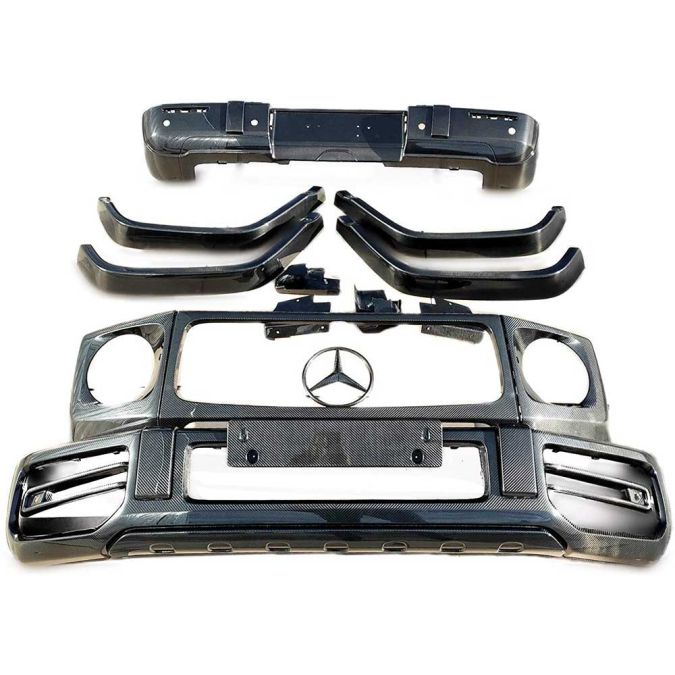 Crafted from high-quality carbon fiber, this body kit not only adds a sleek and aggressive look to your G-Class but also improves its aerodynamics. The lightweight and durable carbon fiber construction reduce the overall weight of your vehicle, resulting in improved acceleration and fuel efficiency.