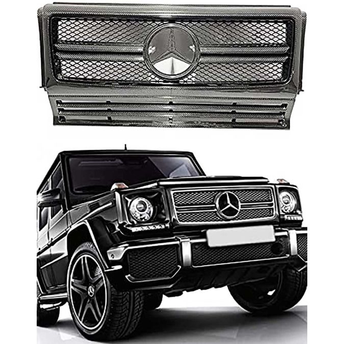 Introducing the Carbon Fiber Badge Front Grille Frame Set for Mercedes-Benz G-Wagon (G-Class W463)! Make a bold statement with your vehicle and enhance its aesthetic appeal with this high-quality grille frame set.