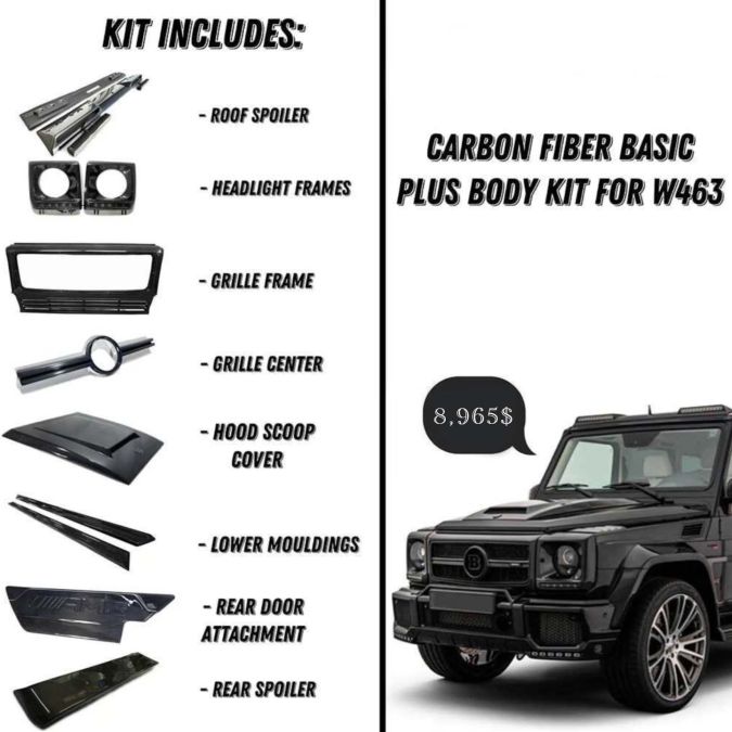 But don’t wait too long before making your decision. This Carbon Fiber Basic Plus Body Kit is highly sought after by car enthusiasts worldwide, and we have limited stock available. Don’t miss out on the opportunity to elevate your Mercedes-Benz G-Class W463 to the next level of style and performance.