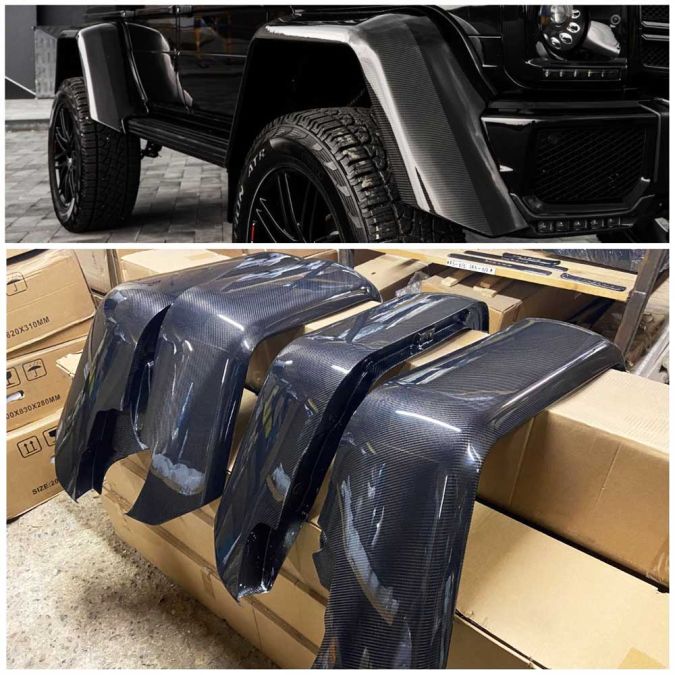 Why settle for ordinary fender flares when you can upgrade to these premium carbon fiber ones? Stand out from the crowd and make a statement with the Carbon Fiber Fender Flares for Brabus Mercedes-Benz W463 G-Wagon 4×4 Squared. Order now and take your G-Wagon to new heights of style and performance.
