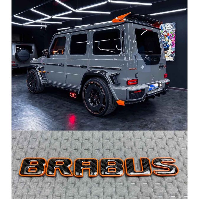 - Premium Craftsmanship: These Brabus badges are meticulously designed, with two-part construction that includes a base made of orange glossy metal and carbon letters. The result is a striking and stylish appearance.