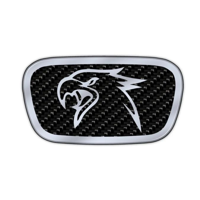 Our 'Carbon Fiber V2 Hawk' Steering Wheel Center badge features genuine carbon fiber and your choice of 12 available accent colors (Image shown in 'Silver' - anything pictured in silver will appear in your selected color).