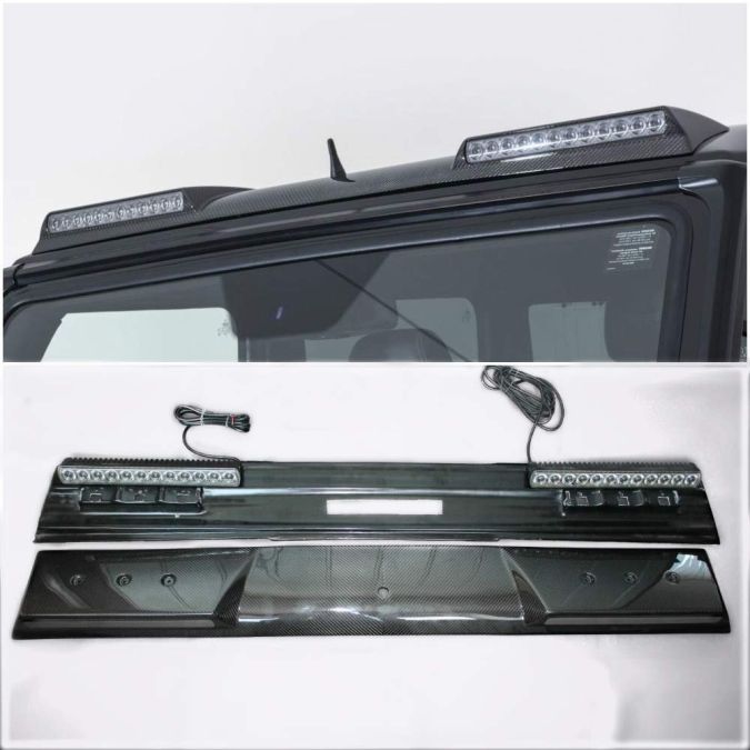 Carbon spoiler with LED for Mercedes G-Class W461 W463 G55 G65 G63, aerodynamics, installation, energy-saving LEDs, fast delivery, original.