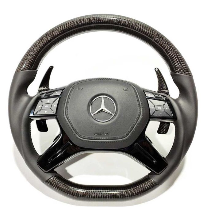 Introducing our Carbon Leather Steering Wheel with Carbon Paddle Shifts, specifically designed for Mercedes-Benz ML W166, GL, GLS, GLE W292, G W463, and W212 models.