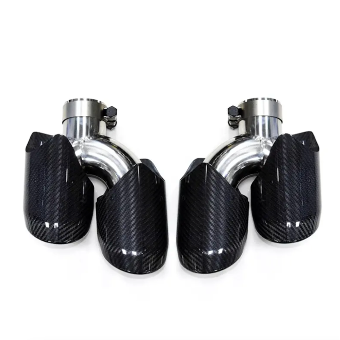 Die Carbon Endrohre ersetzten die serienmäßig verbauten Endrohre und betonen mit seinem High-Tech-Charakter die Individualität und Sportlichkeit des Fahrzeugs.