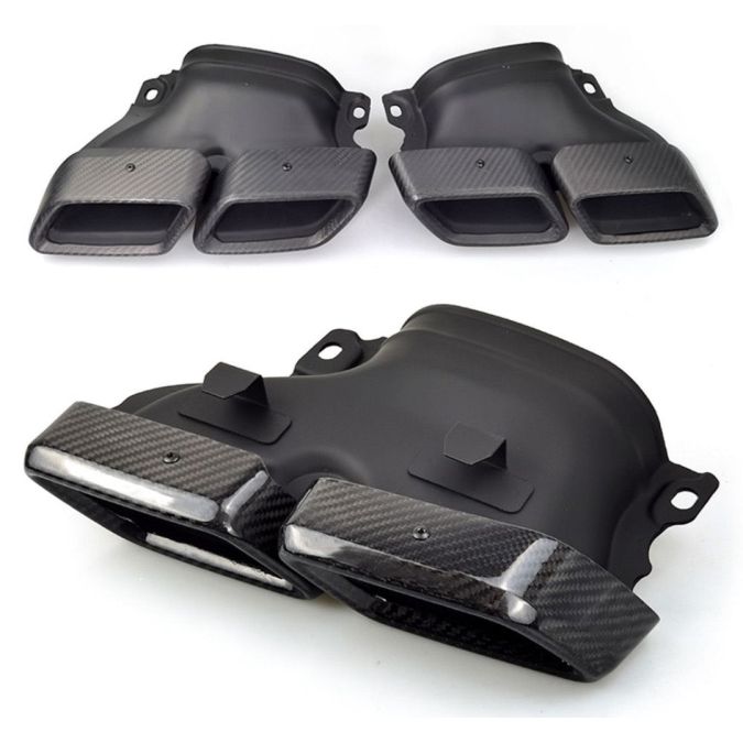 Die Carbon Endrohre ersetzten die serienmäßig verbauten Endrohre und betonen mit seinem High-Tech-Charakter die Individualität und Sportlichkeit des Fahrzeugs.