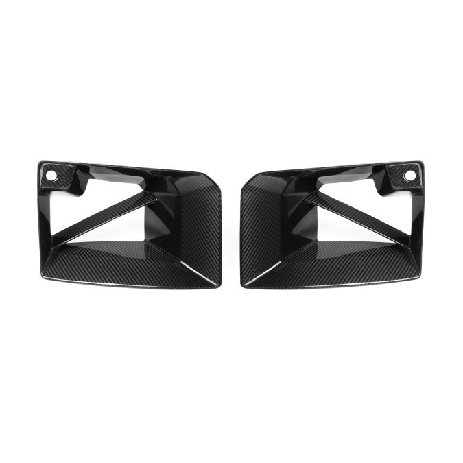 Die Carbon Frontlufteinlässe ersetzen die serienmäßig verbauten Frontlufteinlässe und betonen mit ihrem High-Tech-Charakter die Individualität und Sportlichkeit des Fahrzeugs. Bei diesem Artikel handelt es sich um ein Paar bestehend aus Beifahrer- und Fahrerseite.