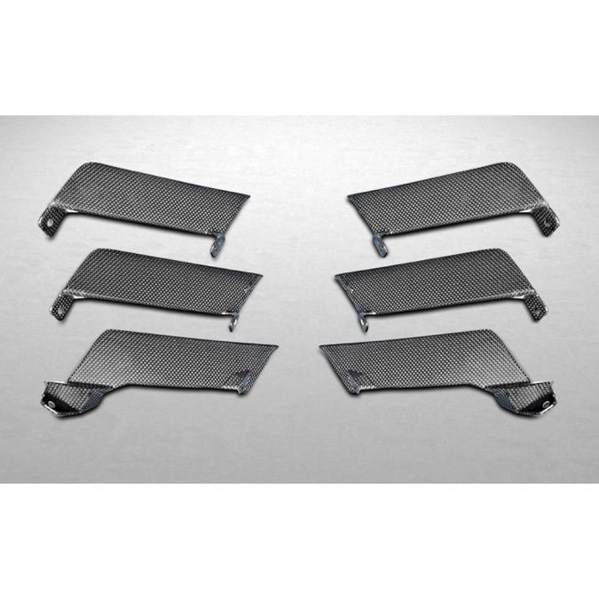 Air outlet ribs front, supplied as a set of 6 pieces, left and right for the Ferrari 458 Speciale/Aperta. Full carbon fiber, gloss finish. Finished with clear lacquer and additional polish.