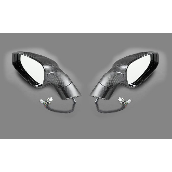 Exterior mirror-case set (right and left mirror case) for the Ferrari 488 model range. Full carbon fiber, available in gloss polished finish or matte finish.