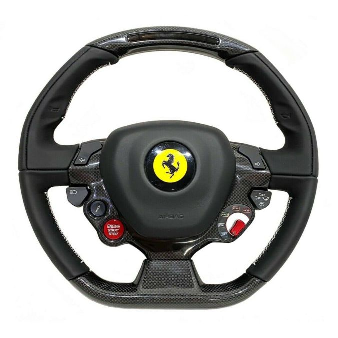 Upgrade your Ferrari 488 PISTA or SPIDER with this genuine OEM Carbon Steering Wheel with LED. Handcrafted by Ferrari, this sleek and modern design will enhance your driving experience. With a handling time of 3-5 business days, you can have this high-quality upgrade installed in no time. Shipping worldwide, so inquire for quotes today!