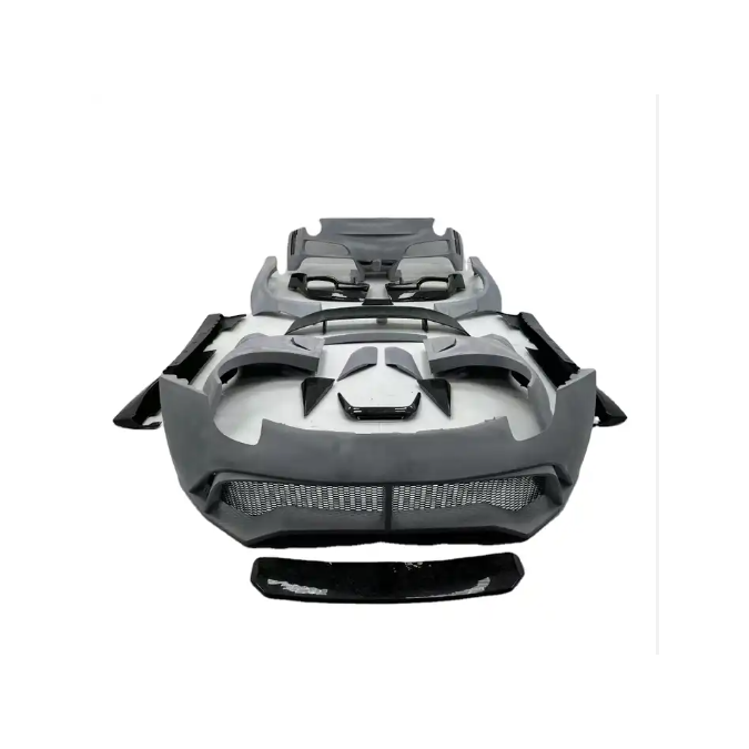 Introducing the "Ferrari F12 N-Largo Style Full Wide Body Kit" from Auto-Parts, UAB. Elevate your Ferrari with this striking enhancement designed exclusively for Ferrari vehicles. This comprehensive kit includes a front bumper, fenders, side skirts, a rear bumper with a carbon fiber diffuser, rear over fenders, a spoiler and base, a carbon fiber hood scoop, and a hood vent. Transform your ride with unparalleled style and aerodynamic performance.