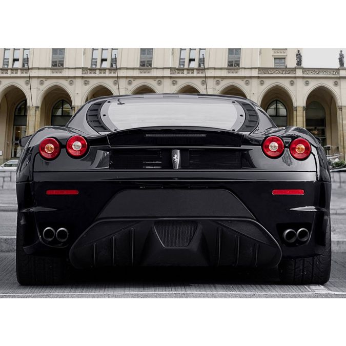 Rear Bumper, engineered as a conversion kit solution for F430 owners. The end pipes can stay at their original place while adding a new and aggressive look to your car. Also available in complete 100% visible carbon fiber.