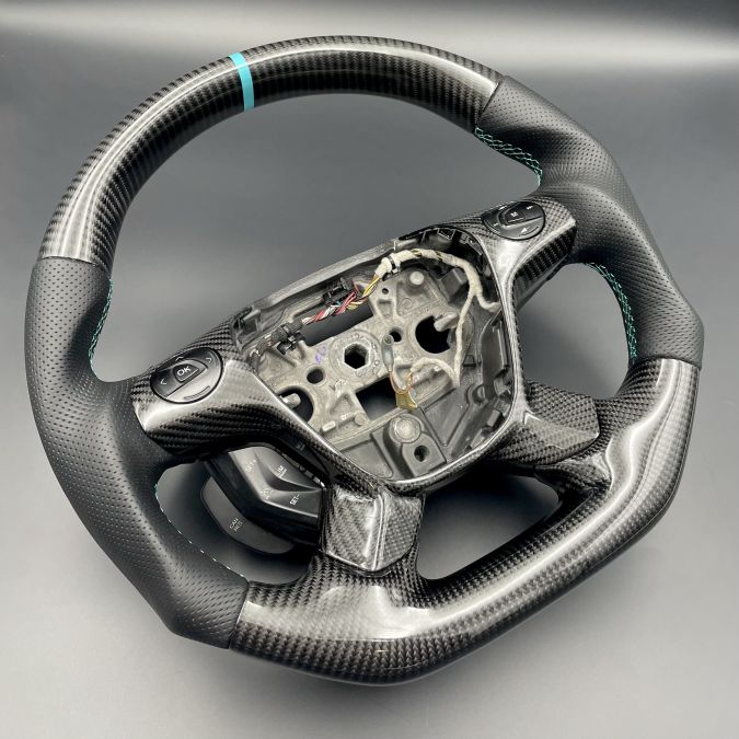 FORD TRANSIT CUSTOM MK8 STEERING WHEEL FLAT NEW CARBON + LEATHER TURQUOISE