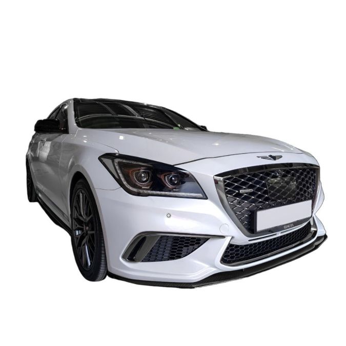 The DH generation of the Genesis G80 is definitely the most aggressive and sporty looking generation so far. This makes it the perfect candidate for the ADRO carbon fiber front lip kit! This easy to install front lip is designed to add a whole new level of aggression to the front end of the G80. This lip accents the large front grille and angular air intakes by adding additional angles on the splitter to add depth the the entire front bumper cover. This front lip is made from real, hand-crafted carbon fiber that will be lightweight, durable, and provide a slight increase in downforce. Adding this lip will give you the perfect balance between a luxury car and an aggressive performance sedan.