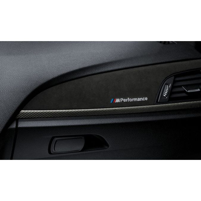 - M Performance driver and passenger finisher made from Alcantara with carbon decorative strip (M Performance stitching on the passenger side).