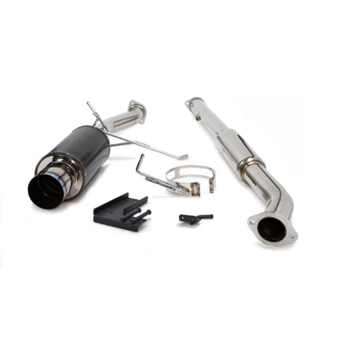 HKS Carbon Ti cat back exhaust features a beautiful, carbon fiber wrapped muffler and burned blue Ti style tip. HKS parts are made in Japan.