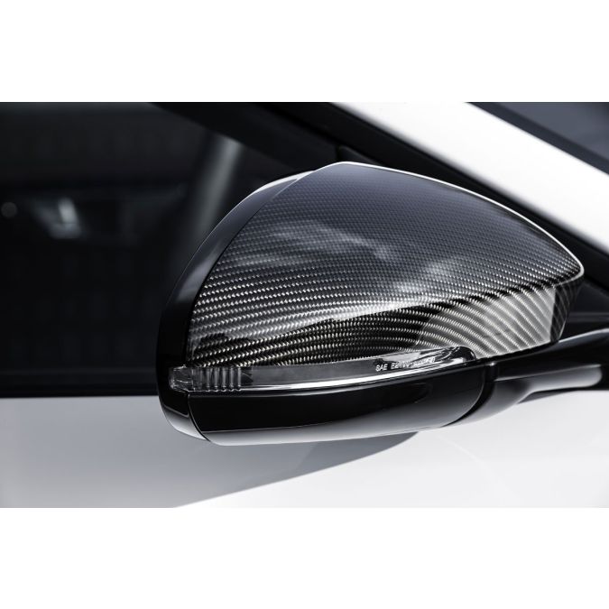 Mirror cover in carbon fibre high-gloss finish, supplied as a pair (left and right).