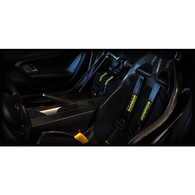 For Lamborghini owners looking to take their Gallardos to the next level of safety during any road-racing or spirited driving events, Tecnocraft presents the worlds first and only industry-standard commercial harness bar system in the world. Our harness bar assembly specifically contours to the Gallardo interior, maintaining rear hatch-access control, OEM seatbelt usage, and maximum T1 seat (LG-RS001C) adjustability and clearance, while bolting straight through the vehicle frame in factory locations. Safety and strength are displayed throughout the intricate design of the harness system, from its LG-BR001 floor bracket mounting support bars, to the no compromise inclusion of Carbon/Kevlar self-lubricating spherical rod ends for easy adjustability and final system installation. The Tecnocraft Gallardo 4-Pt. Racing Harness Bar Assembly is the ultimate display of consumer dedication to safe and spirited Lamborghini driving experiences.