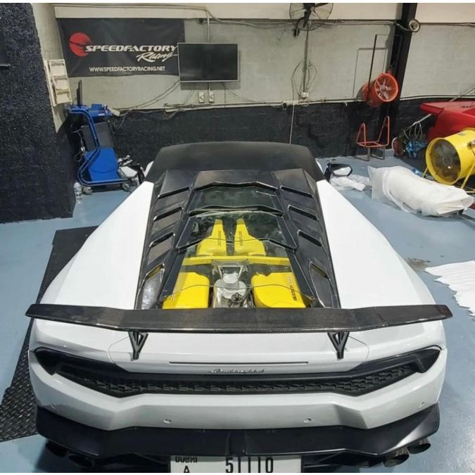 Premium Carbon Fiber Construction: Crafted from the finest carbon fiber materials, this engine cover is a work of art in itself. Carbon fibers lightweight yet incredibly strong nature not only enhances the visual allure of your Lamborghini but also reduces overall weight, which is vital for high-performance vehicles like the Huracan.