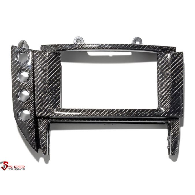 Carbon fiber surround for navigation/radio/climate control. Available for left hand drive cars and right hand drive cars.