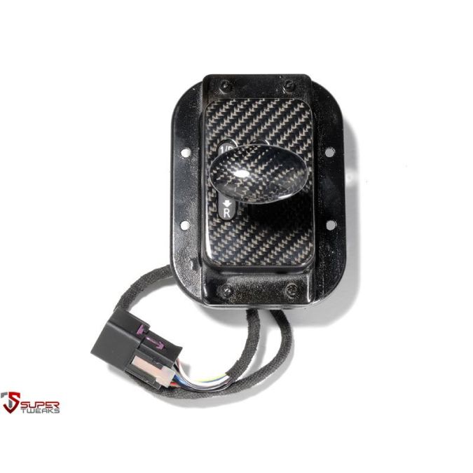 Carbon fiber shifter to choose between forward gear and reverse gear, including lower head plate. Available for both left hand drive cars and right hand drive cars.