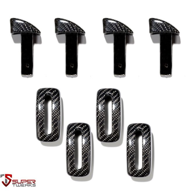 Carbon fiber 4 release handles for the seat back, each seat r+l, including the frames! Will fit both left hand drive cars and right hand drive cars.