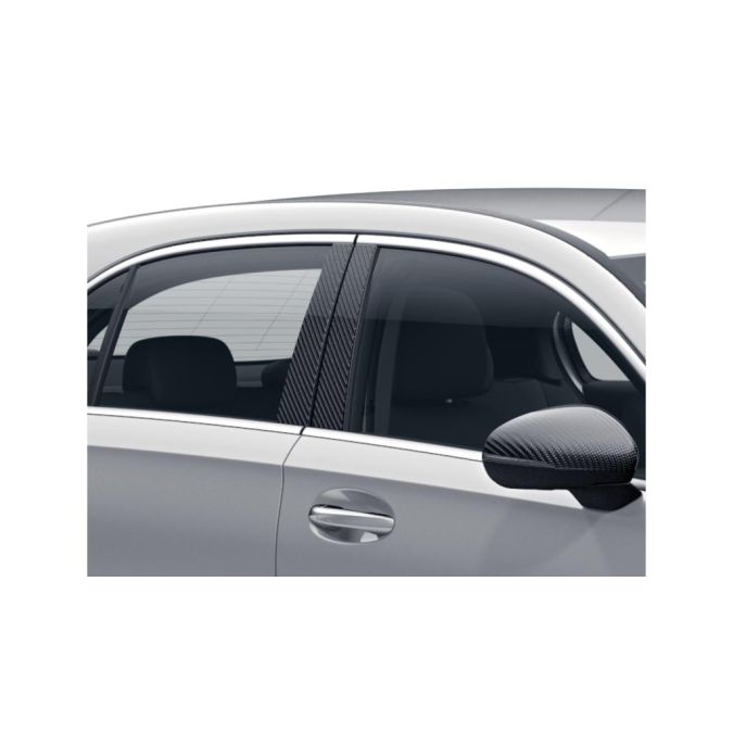 Mercedes-Benz Sport Equipment B-Säulen-Cover in realitätsnahem Carbon-Style und individuell dynamischer 3D-Tiefenoptik unterstreicht das dynamische Erscheinungsbild des Fahrzeugs. Keine Eintragung in die Fahrzeugpapiere notwendig, einfache und sichere Montage durch Spezialklebeband.