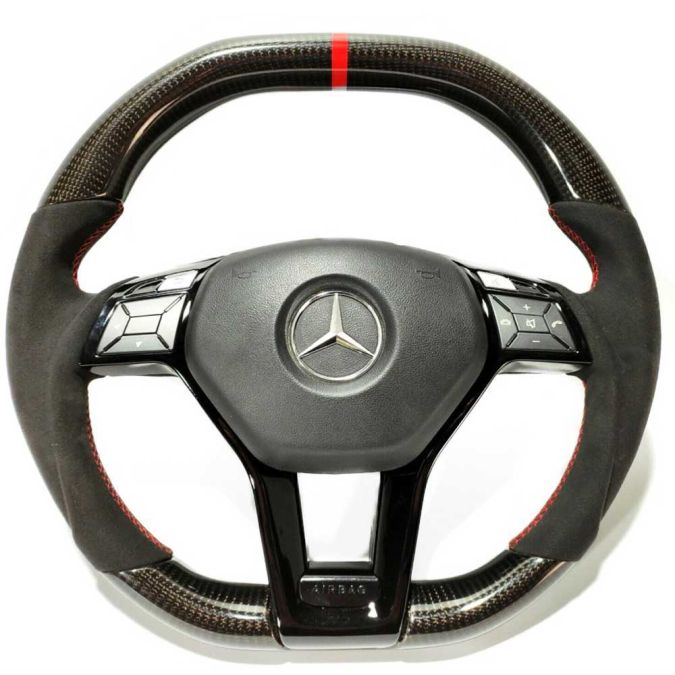 Introducing the Mercedes W212/W204/W218 AMG-Style Steering Wheel – the epitome of luxury and sportiness combined. Elevate your driving experience with this exquisite carbon fiber and Alcantara steering wheel, featuring a striking red stripe that adds a touch of elegance to your Mercedes.