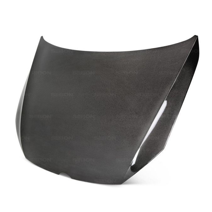 Upgrade your Volkswagen Golf, GTI, or R with this high-quality OEM-style carbon fiber hood from Seibon Carbon. Hand-crafted with precision and constructed with a consistent weave pattern, this hood offers superior strength and stiffness. The glossy clear coat finish ensures durability and a stunning look. Shed unnecessary weight without sacrificing style with this genuine Seibon Carbon product. Perfect for 2015-2021 models. Trust in Seibon's 15 years of experience in carbon fiber craftsmanship. Shop now at https://seiboncarbon.com/products/oem-style-carbon-fiber-hood-for-2015-2021-volkswagen-golf-gti-r.html.